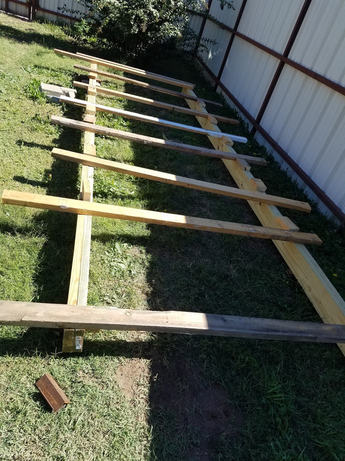 We laid out the building on the slab. There will be room behind the building and on one side for storage.